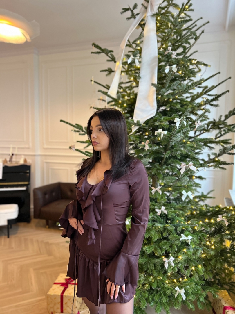 Brązowa Mini z długim rękawem